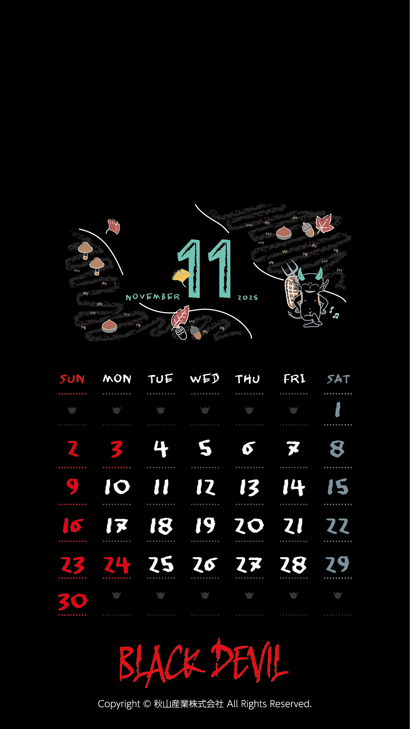 目と鋭いツノが特徴的な悪魔の子供、デビルくん。いつも何かを企んでいるような笑顔を浮かべている。手に持っている大きなフォークで様々なことを探求し、新しい冒険に挑戦する。フォークはデビルくんの冒険心や好奇心の表れであり、彼が手に持つことでいろいろな問題や困難を突破していくのである。デビルくんは陽気で冒険好き。そして、いつもちょっとした悪戯を仕掛けては楽しい驚きを提供している。デビルくんは、冒険、友情、そしてポジティブなエネルギーを伝える存在として、広く愛されています。